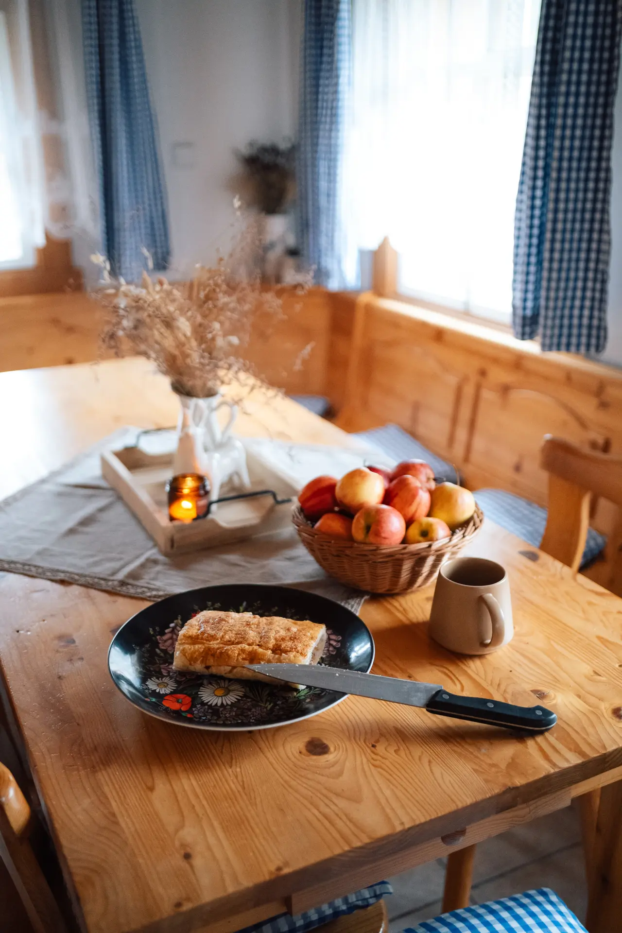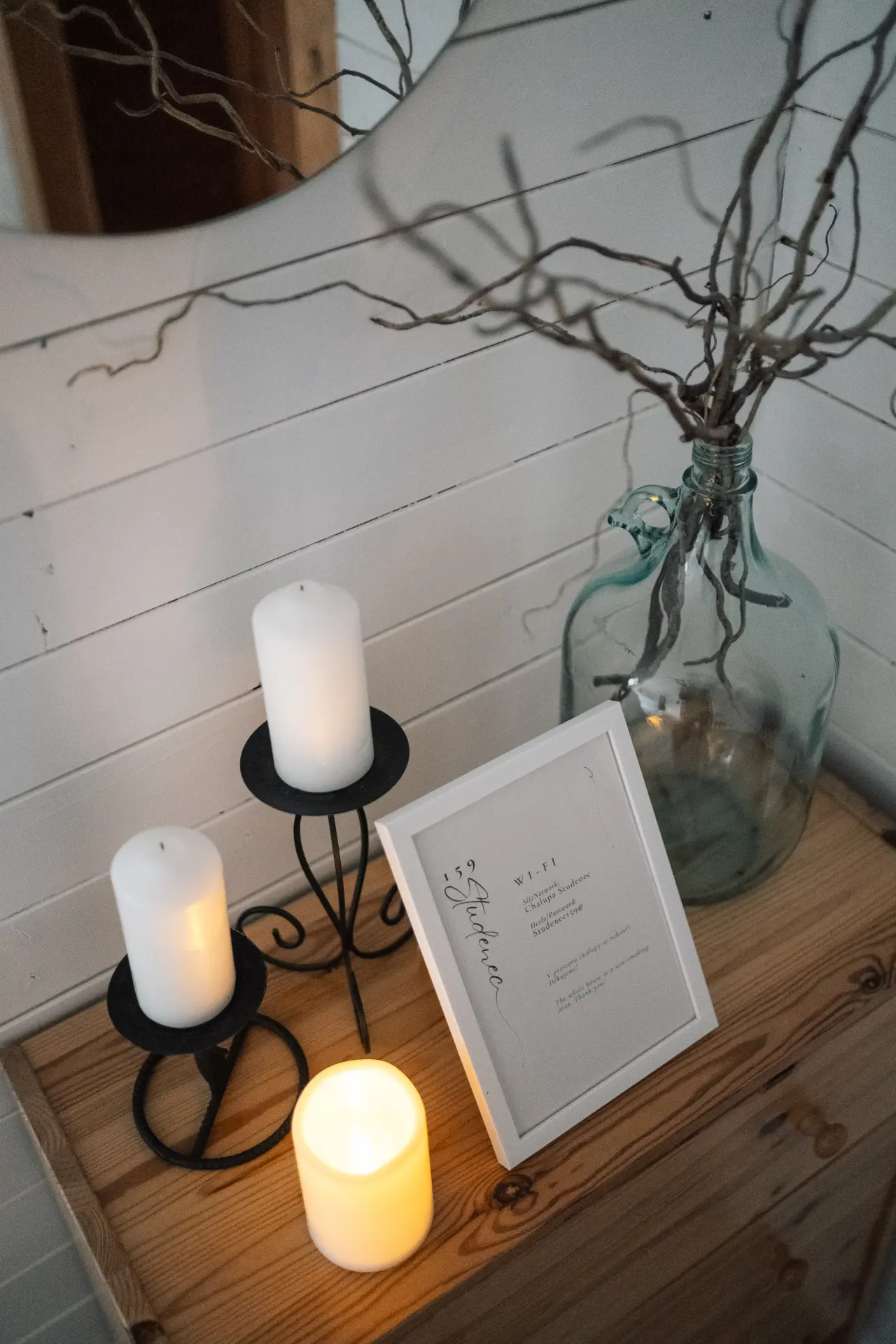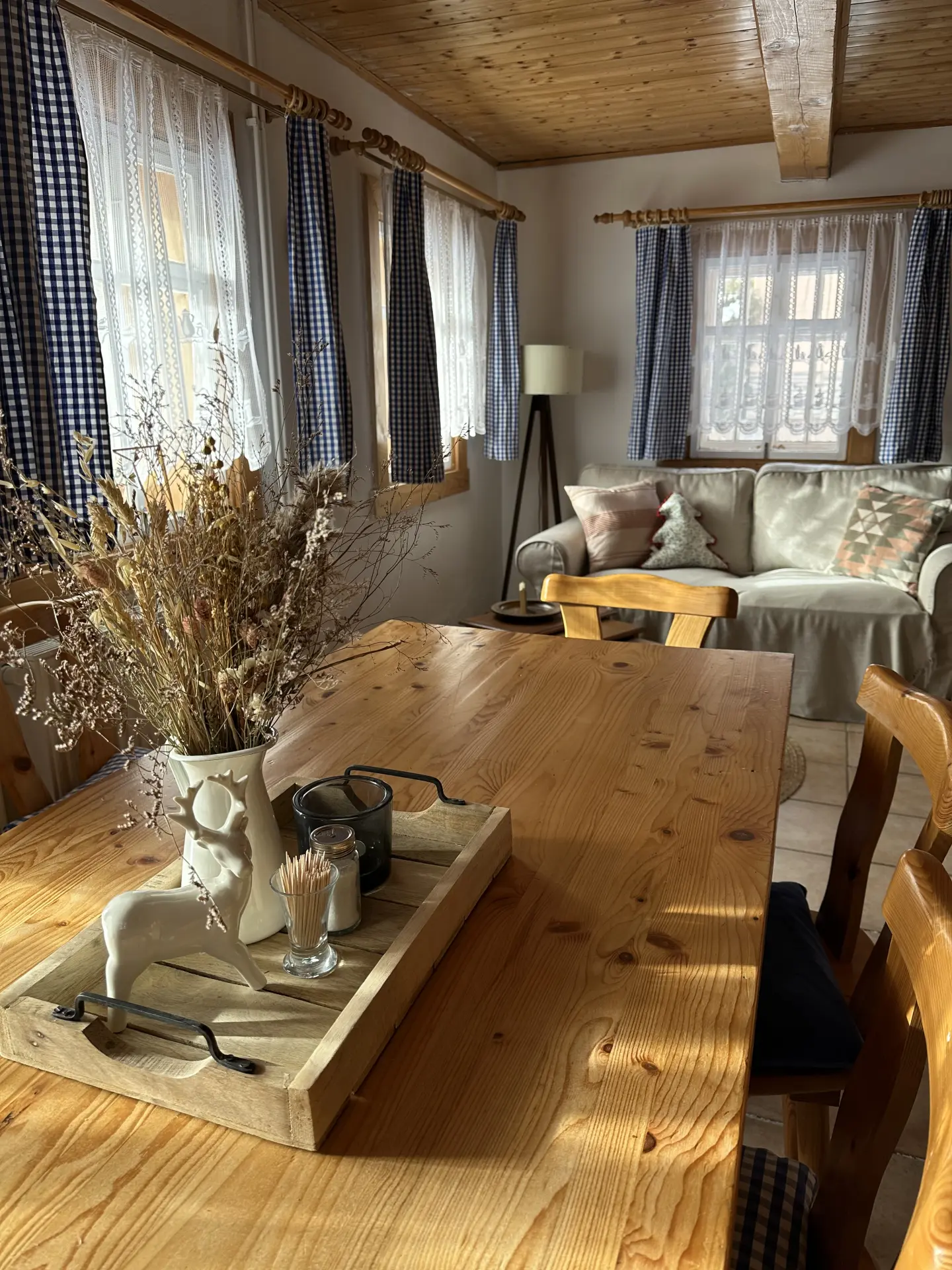 Prostorná světnice s vybavenou kuchyňskou linkou, kávovarem, mikrovlnkou, gaučem a Bluetooth reproduktorem.